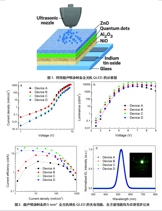 近日,我校太阳成集团tyc7111cc张汉壮、纪文宇教授课题组与电子学院谢文法教授课题组合作,利用超声雾化喷涂技术,制备了迄今为止性能最佳的全无机量子点电致发光器件(QLEDs)(ACS Photonics 2017, DOI:10.1021/acsphotonics.7b00216)。
