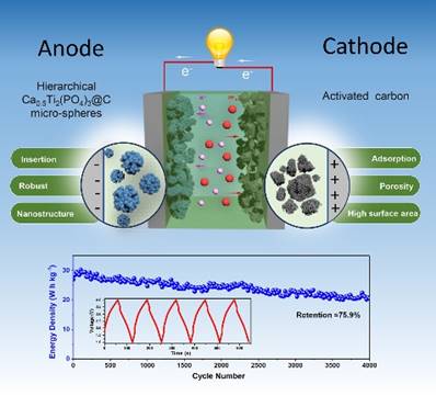 图3. 钾离子混合电容器示意图以及循环性能