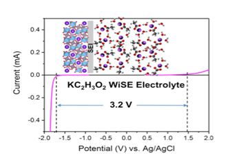 图2. 钾基“water-in-salt”水系电解液电压窗口示意图