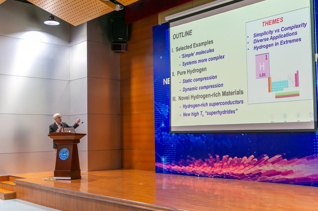 讲座中,Russell J. Hemley院士以在极端条件下(超高压力和高温)产生的常压和室温下很难获得或观测的新材料与新现象为背景,阐述了这些新的晶体结构与新奇的物理现象对凝聚态物理学、地球物理学、行星物理学、天体物理学以及生物物理学产生的深远影响,分享了其团队发现的百万大气压可以诱导氢的金属化,并在实验中发现一类“超氢化合物”新材料,在约200万大气压条件下获得了接近室温的超导电性的研究成果。Hemley院士还与大家分享了在科学研究中,如何激发潜能、加强交流等方面的经验与体会。现场师生通过与Helmey院士的交流讨论,受到了一场学术思想上的洗礼。此次讲座也得到了老师与学生们的高度好评。