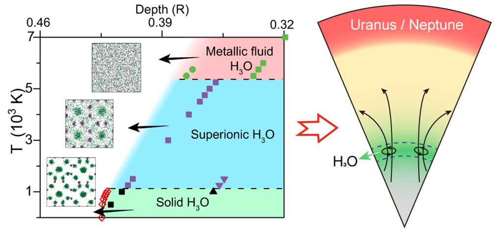 图1. 流体导电层H3O是理解天王星和海王星多级磁场形成的关键因素之一。