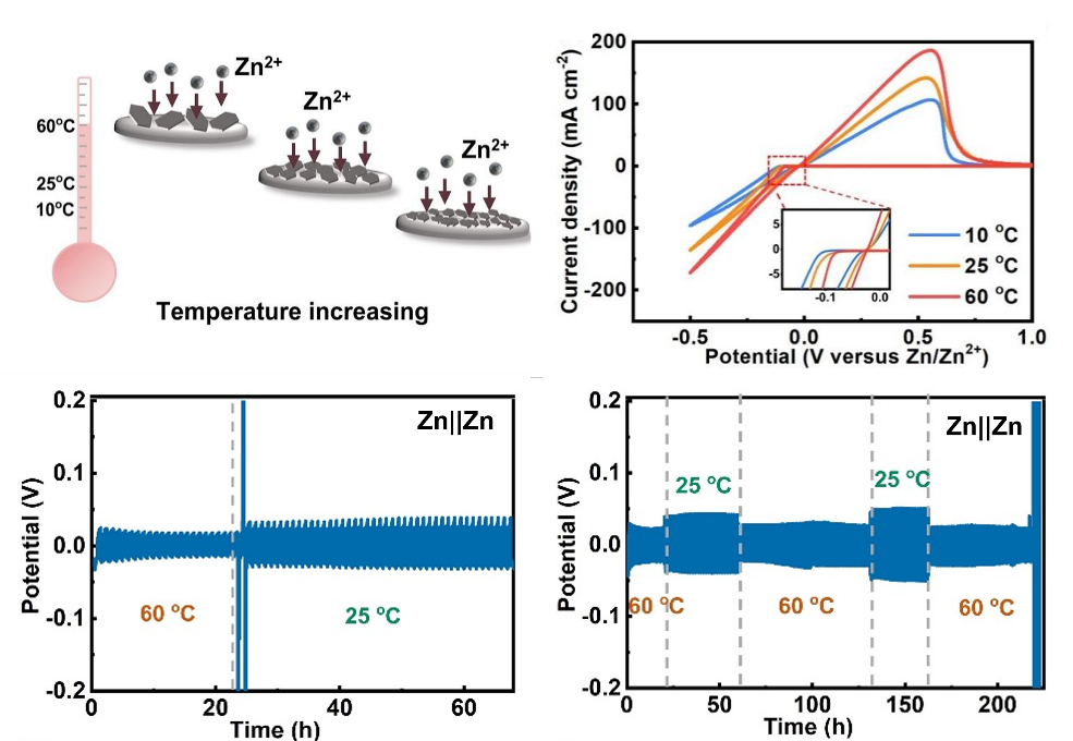 ▲不同温度下锌电沉积成核行为以及温度调控锌金属阳极自我修复过程