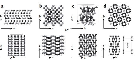 图一,预测的锂的高压相晶体结构,(a)aP160,(b)oP192,(c)oP48,(d)tI20