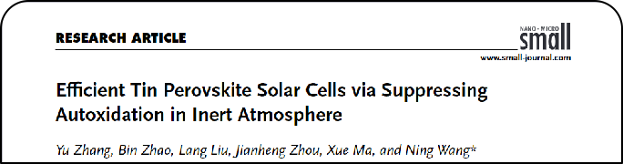 近日,国际知名学术期刊《Small》刊发了太阳成集团tyc7111cc凝聚态物理系王宁教授在锡基钙钛矿太阳能电池领域的研究论文:“Efficient Tin Perovskite Solar Cells via Suppressing Autoxidation in Inert Atmosphere”(DOI:10.1038/ smll.202306115)。