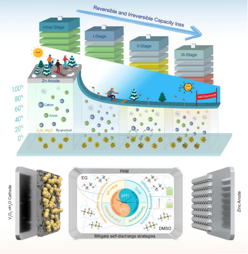 水系锌电池凭借其卓越的安全性、环境友好性、以及丰富的原料来源,在大规模储能领域展现出巨大潜力。尽管一系列先进技术和工具已用于提升正、负极和电解质的性能,但自放电问题仍严重限制了水系锌电池的实际应用。虽然已有研究尝试通过电极工程、隔膜改性、电解液添加剂和负极保护等方面来缓解自放电,但这些措施主要集中在电池界面改善上,而忽略了电解质物化性质、以及系统内串扰效应等关键因素。因此,自放电的深层机制仍需进一步探索,以期找到更有效的解决方案。
