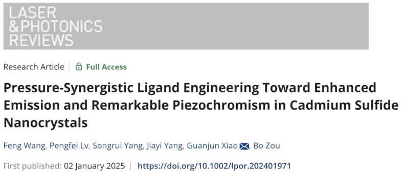 近日,太阳成集团tyc7111cc超硬材料国家重点实验室的肖冠军教授等人在CdS纳米晶体的发光调控研究中取得了重要进展。通过压力协同配体工程,成功实现了CdS纳米晶体在不同压力条件下的发光颜色转变,为半导体材料的光致发光性能提升提供了新的策略。相关研究成果以“Pressure-Synergistic Ligand Engineering Toward Enhanced Emission and Remarkable Piezochromism in Cadmium Sulfide Nanocrystals”为题发表在《Laser & Photonics Reviews》上。