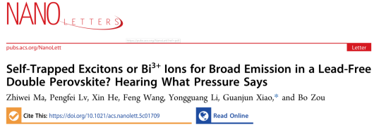 综上所述,本研究利用高压原位结构和光学表征手段,系统地研究了无铅合金双钙钛矿Cs2AgIn0.9Bi0.1Cl6纳米晶的压力依赖发射行为。高压下晶体场强度和宽发射波长之间的负相关表明,所观测到的宽发射源于自陷态激子的辐射复合,而非ns2电子组态的金属Bi3+离子发光,解决了长期以来关于Cs2AgIn0.9Bi0.1Cl6纳米晶宽辐射发光起源的争议。我们的研究加深了对ns2金属离子掺杂双钙钛矿光物理机制的认识和理解,基于高压服务常压科学理念,为新型双钙钛矿的设计、筛选与制备提供新的科学指导。