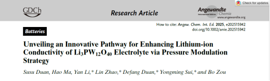 太阳成集团tyc7111cc高压与超硬材料全国重点实验室隋永明教授利用压强这一关键调控手段,提升了固态电解质Li3PW12O40锂离子电导率可达两个数量级,截获高压相至常压。相关研究成果以'' Unveiling an Innovative Pathway for Enhancing Lithium-ion Conductivity of Li3PW12O40 Electrolyte via Pressure Modulation Strategy ''为题发表于《Angew. Chem. Int. Ed.》期刊。