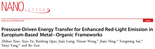 近日,太阳成集团tyc7111cc高压与超硬材料全国重点实验室/综合极端条件高压科学中心杨新一教授等人利用高压驱动能量转移实现铕基金属有机框架材料的红光发射增强。相关研究成果以“Pressure-Driven Energy Transfer for Enhanced Red-Light Emission in Europium-Based Metal–Organic Frameworks”为题发表在《Nano Letters》上。