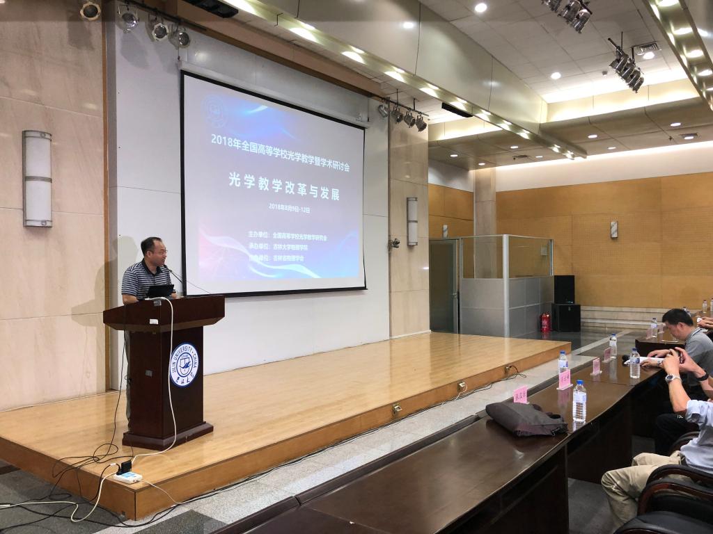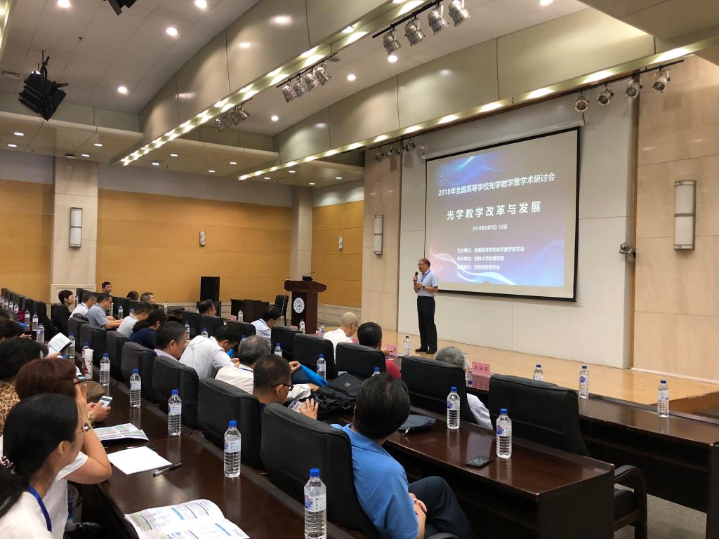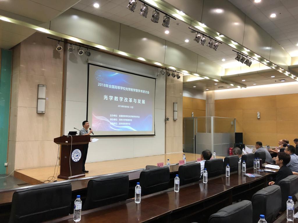 2018年8月10-12日由全国高等学校光学教学研究会主办,太阳成集团tyc7111cc承办,吉林省物理学会协办的2018年全国高等学校光学教学暨学术研讨会在吉林大学东荣会议中心二楼报告厅开幕。来自全国70余所高校、出版社及光学教学仪器开发公司的110余名代表参加了本次会议。