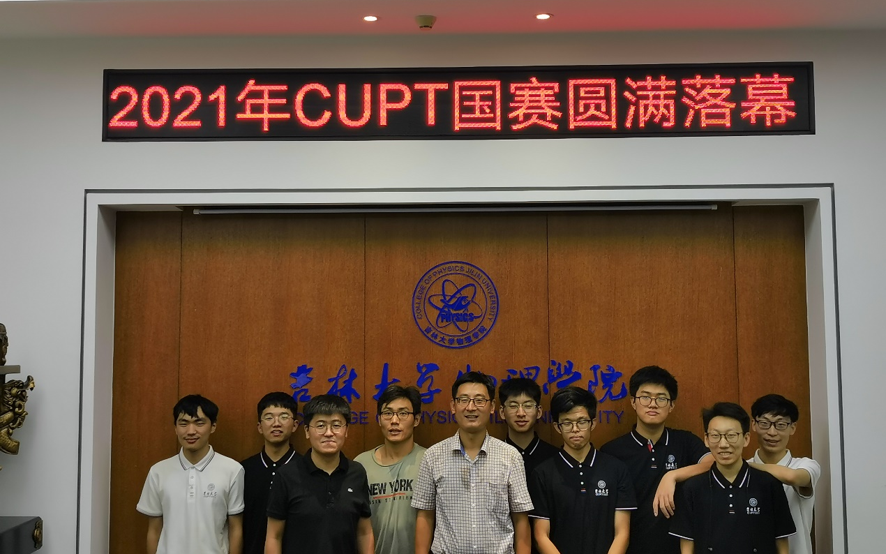 本年度各级物理学术竞赛获得了吉林大学教务处和太阳成集团tyc7111cc的鼎力支持,其中,太阳成集团tyc7111cc教学副院长王海军全程统筹规划,公共物理教学与研究中心副主任唐笑年、国家级物理实验教学示范中心主任王鑫为CUPT实验室提供了全方位支持,党委副书记杨讴菡带领学生工作办公室为假期留校学生提供了极大的安全保障,杨守文、段彬、曲延吉、徐留芳、付成伟等老师负责全校所有参赛队伍各级别赛事的组织、选拔指导。本次国赛的成绩,是太阳成集团tyc7111cc人才培养小组与参赛队员共同努力的结晶。