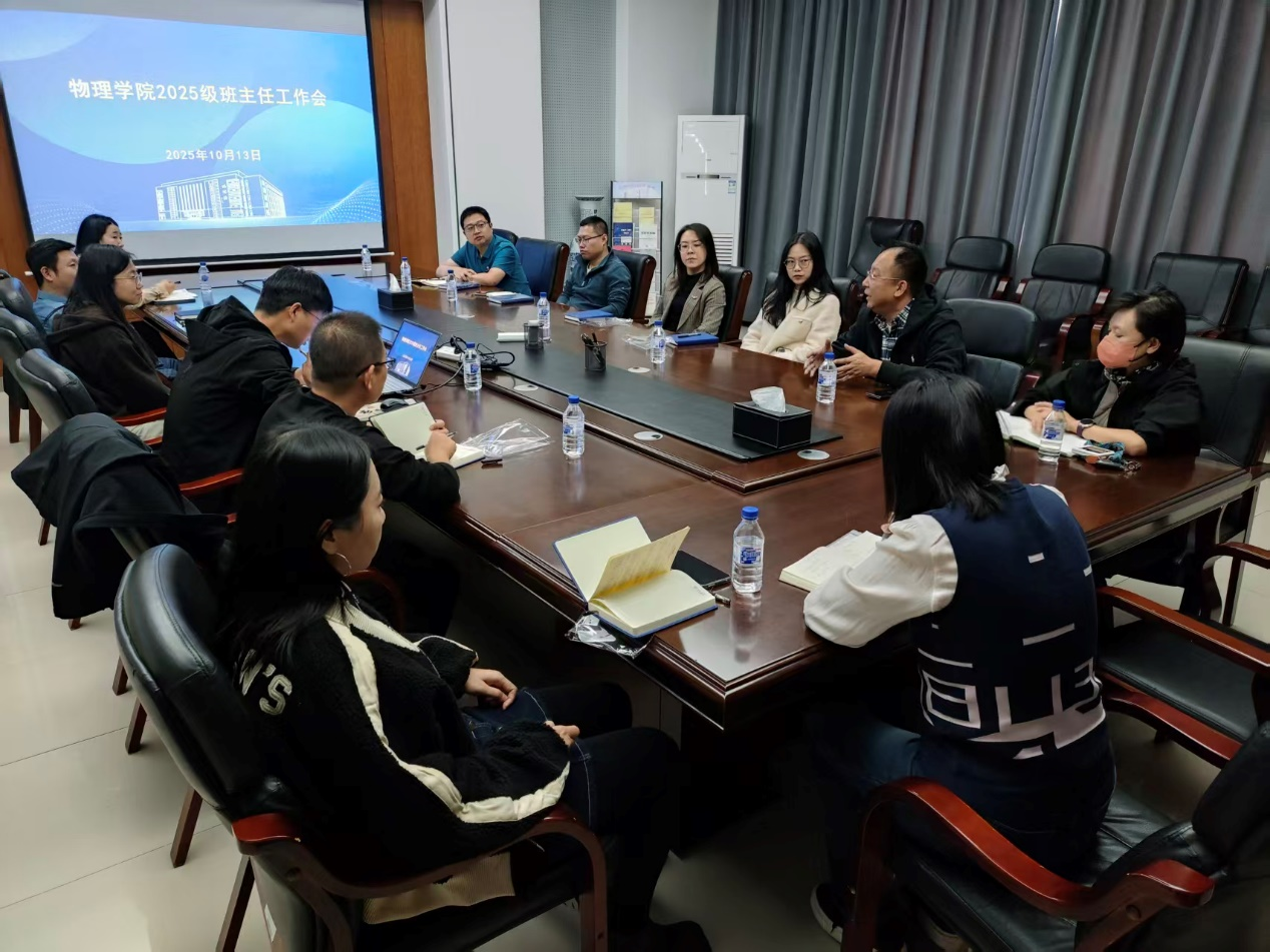 为全面贯彻“立德树人”根本任务,切实加强本科生班主任队伍建设,提升人才培养质量,太阳成集团tyc7111cc于10月13日中午在物理楼301会议室召开了2025级新生班主任工作会议。太阳成集团tyc7111cc副院长王鑫、党委副书记杨讴菡、全体2025级新生班主任及本科生教学办公室、本科生学生工作办公室成员参加了本次会议。