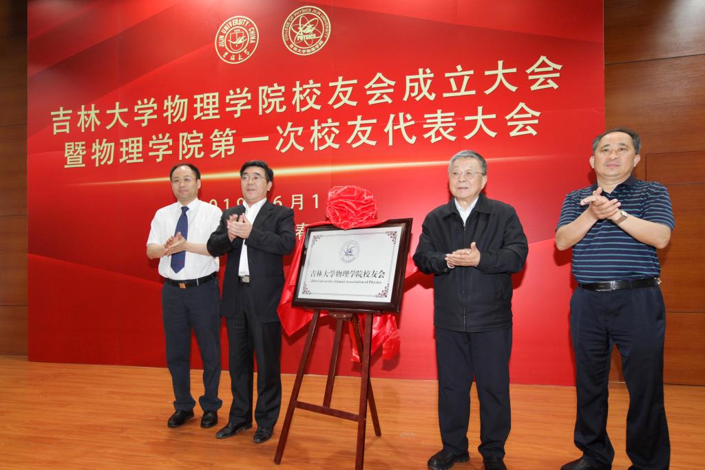 随后,邹广田院士、张向东副校长、马琰铭院长、83级校友赵成波共同为校友会揭牌。
