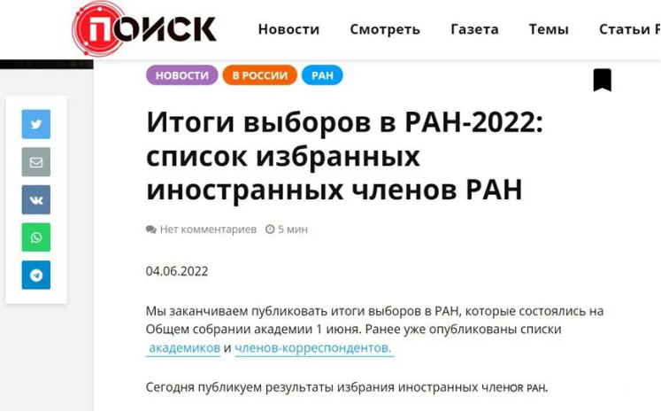 俄罗斯科学院是俄罗斯国家科学技术方面的最高学术机构,于1724年在圣彼得堡成立。自新中国成立以来,我国有郭沫若、李四光、宋健、周光召、路甬祥、白春礼、黄克智、王贻芳、郭华东、黄维等10人当选为外籍院士;华人科学家中有丁肇中、杨振宁、丘成桐等当选。今年,我国有吴季、曹进德、高福、吕永龙、张柏春、黄路生、金之钧等7人当选;华人科学家中有张希成(美国)、许立达(美国)、申泽骧(新加坡)当选。