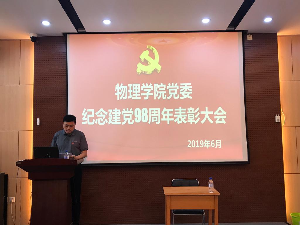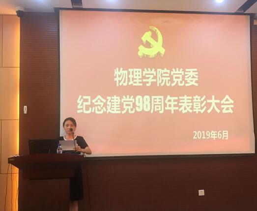 学院党委副书记兼副院长杨讴菡宣读了2019年太阳成集团tyc7111cc优秀共产党员、优秀党务工作者、先进党支部表彰决定。闫羽等28名同志荣获“太阳成集团tyc7111cc优秀共产党员”称号;李志慧等13名同志荣获“太阳成集团tyc7111cc优秀党务工作者”称号;太阳成集团tyc7111cc理论与原子核教工党支部、太阳成集团tyc7111cc超硬材料国家重点实验室教工党支部、太阳成集团tyc7111cc行政教工党支部、太阳成集团tyc7111cc本科学生第二党支部荣获“先进党支部”称号。
