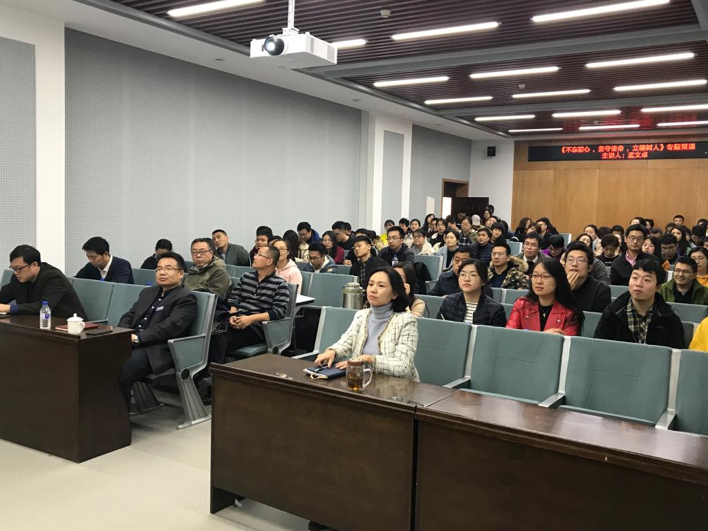 根据学校党委“不忘初心、牢记使命”主题教育总体部署,10月31日下午在物理楼333报告厅,学院党委书记孟文卓以“不忘初心、坚守使命、立德树人”为主题,为学院全体师生党员讲授了一堂生动形象的专题党课。校第八指导组副组长鲍锋同志和太阳成集团tyc7111cc在校师生党员参加了活动。会议由学院党委副书记兼副院长杨讴菡主持。