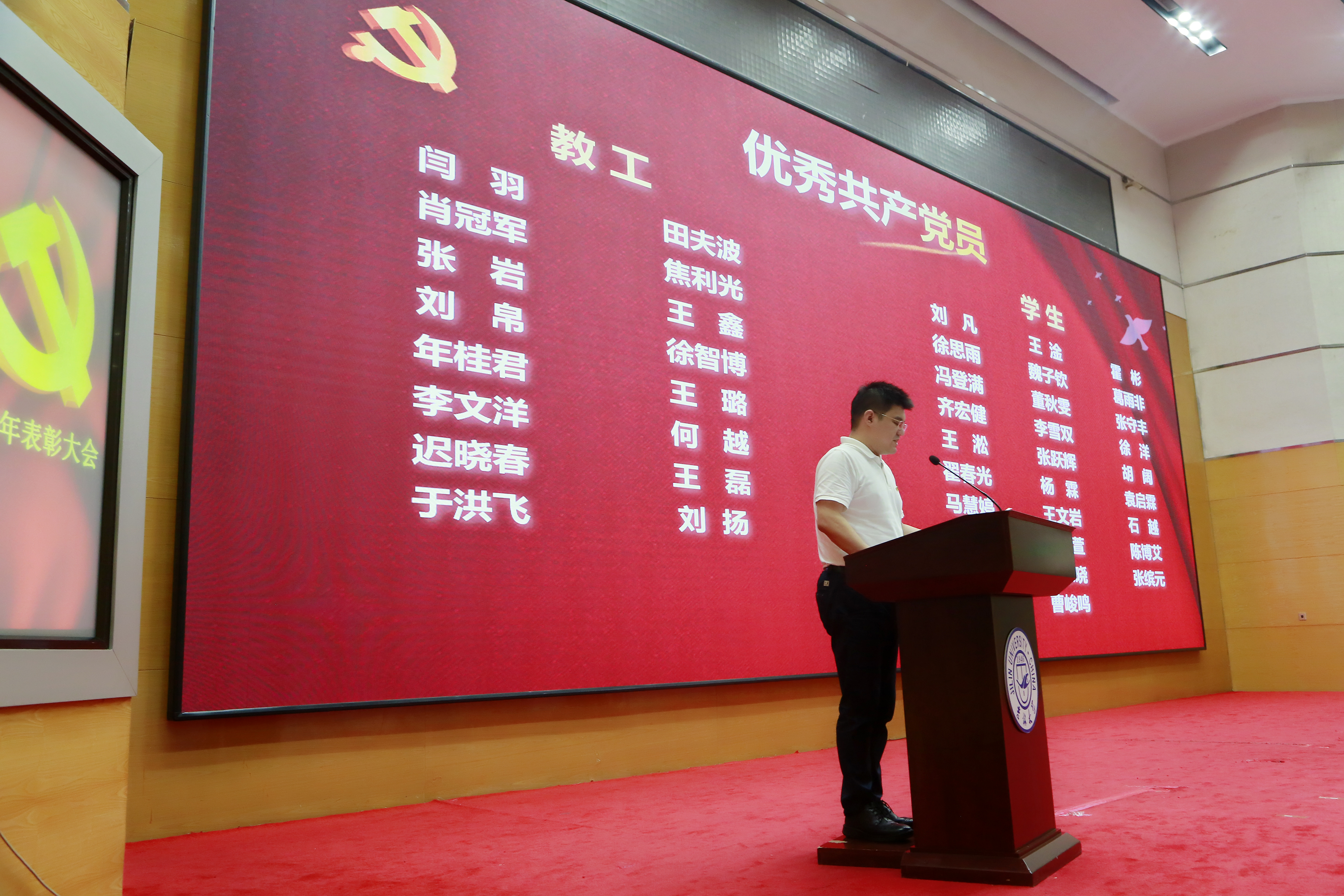 2021年6月25日,太阳成集团tyc7111cc于东荣报告厅隆重举办庆祝建党100周年暨“两优一先”表彰大会。出席会议有学院全体党政班子成员、两委委员、师生党员、入党积极分子。表彰大会由学院党委副书记、纪委书记唐宗明主持。