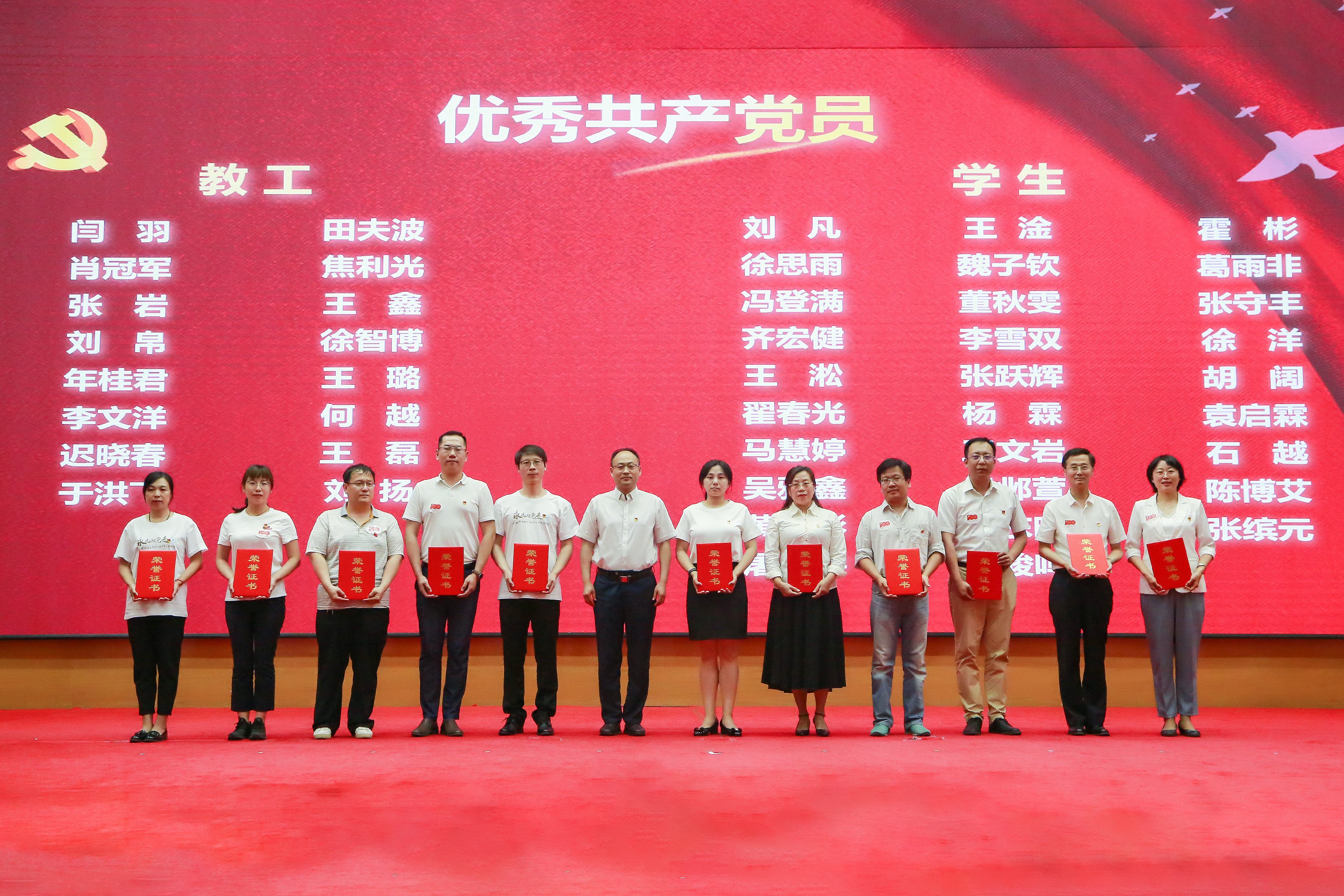 学院副院长杜菲宣读了2021年太阳成集团tyc7111cc优秀共产党员、优秀党务工作者、先进基层党支部表彰决定。闫羽等45名同志荣获“太阳成集团tyc7111cc优秀共产党员”称号;纪红等10名同志荣获“太阳成集团tyc7111cc优秀党务工作者”称号;太阳成集团tyc7111cc实验中心教工党支部等6个党支部荣获“先进基层党支部”称号。院长马琰铭、党委书记孟文卓、副院长王海军为受表彰的个人和集体颁发获奖证书。