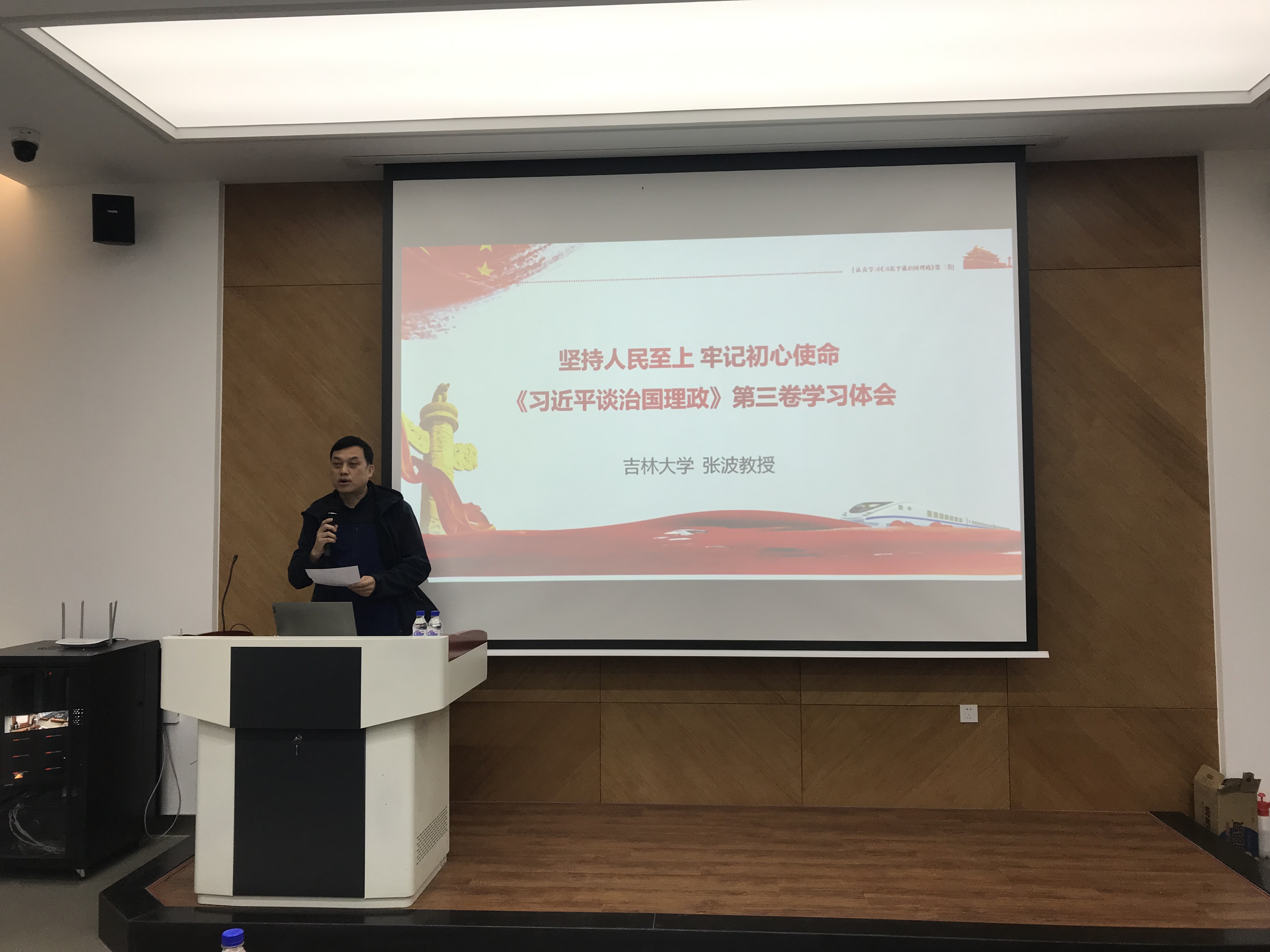 张波教授详细论述了习近平新时代中国特色社会主义思想是立足中国、引领时代的当下中国马克思主义、21世纪马克思主义,是进行“两个革命”、创造“两个奇迹”的行动指南是为携手构建人类命运共同体贡献的中国智慧、中国方案。她强调学习《习近平谈治国理政》第三卷内容,对于推动广大党员、干部和群众学懂弄通习近平新时代中国特色社会主义思想,增强“四个意识”、坚定“四个自信”、做到“两个维护”的认识和理解,具有重要意义。
