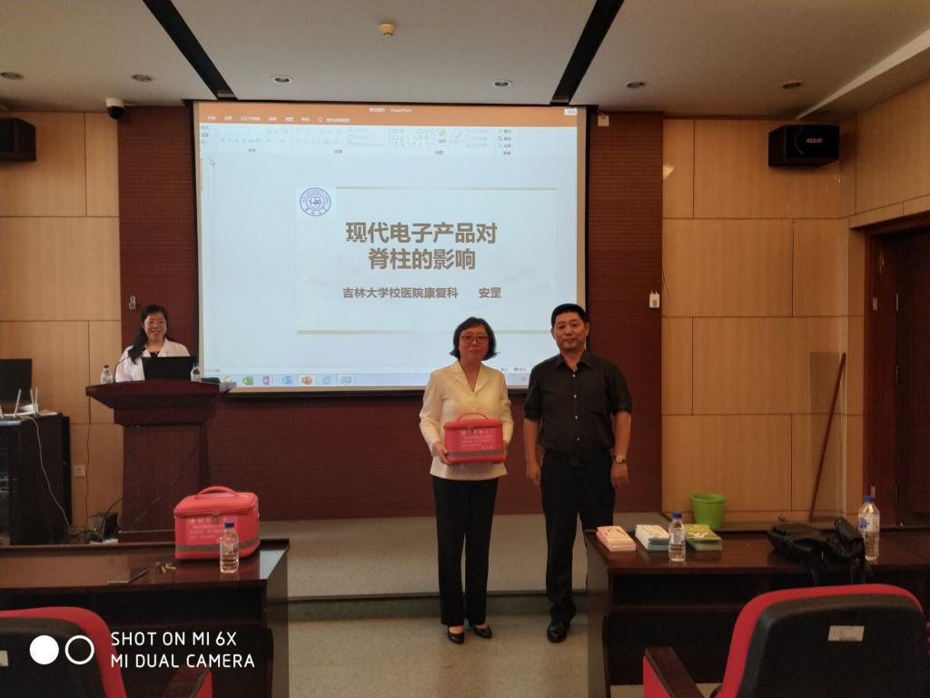 接下来,安罡医生做了题目为《现代电子产品对脊柱的影响》的讲座,从现代电子产品对脊柱损伤的特征、病因的形成、病变、都专业形象的进行了讲解,通过生动的图片对比将颈椎病的预防、治疗、进行了普及,为在场师生留下了深刻的印象。