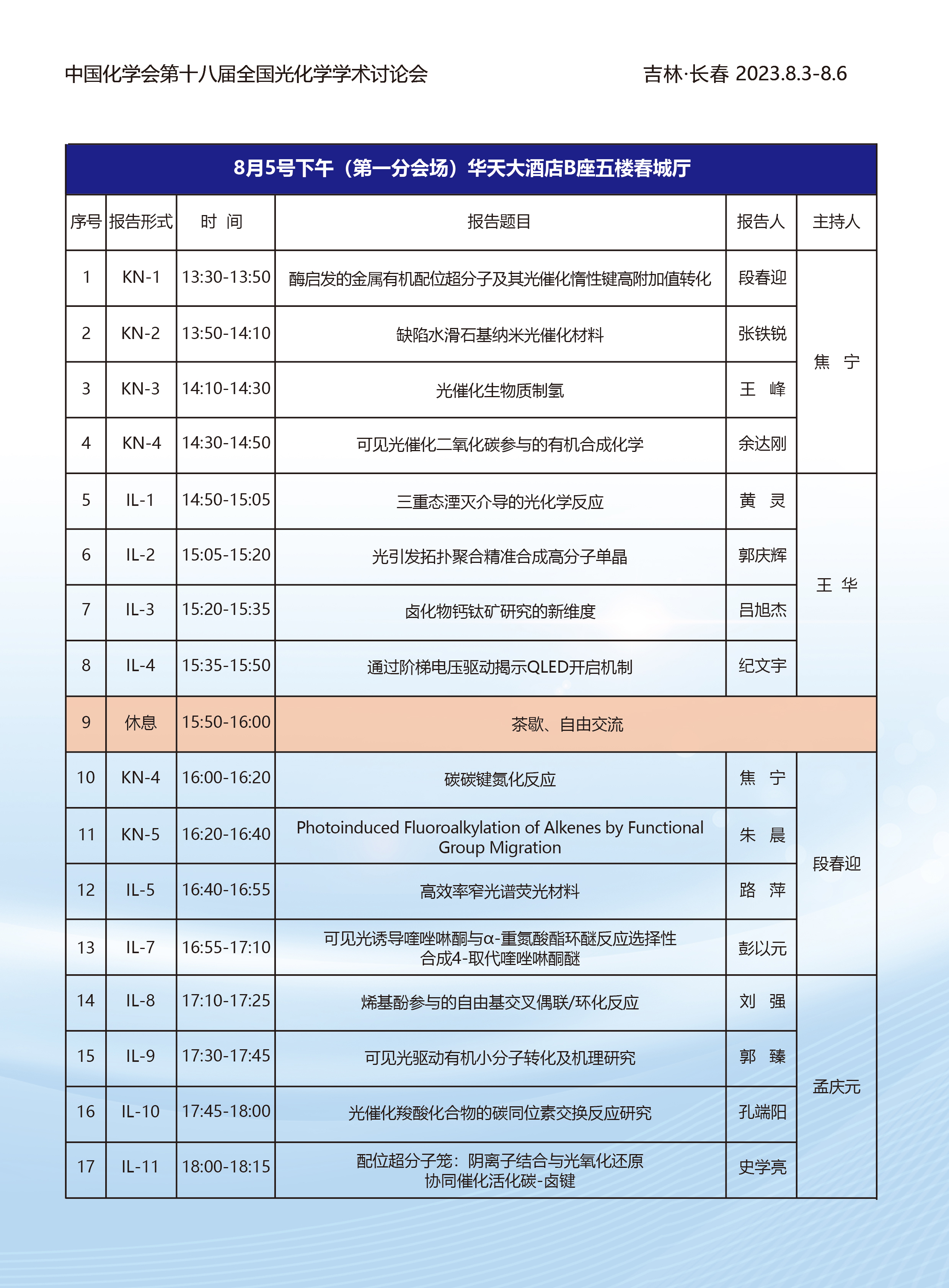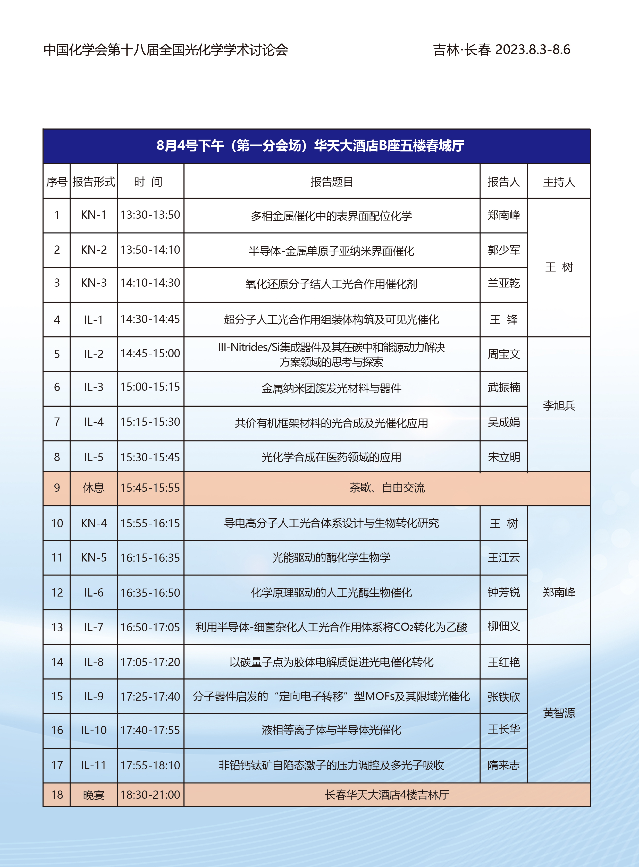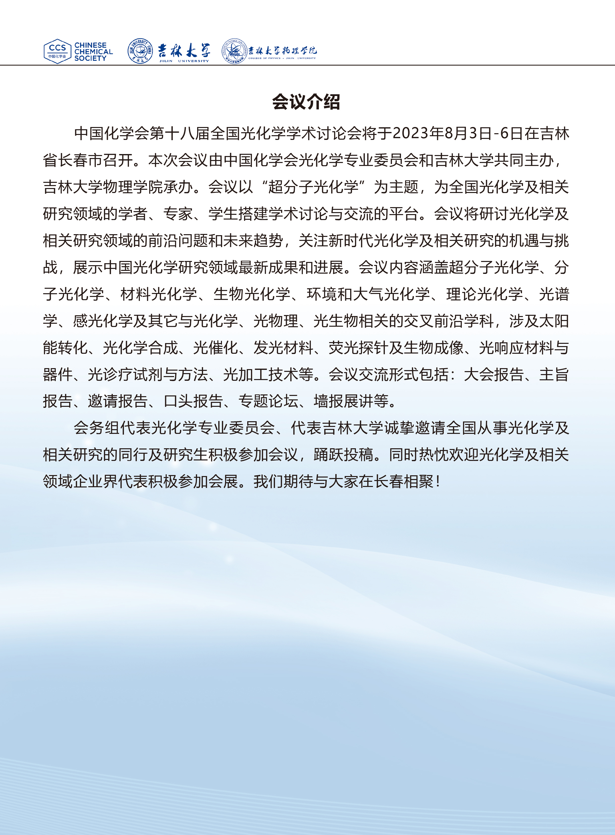 2023中国化学会第十八届全国光化学学术研讨会第三轮通知