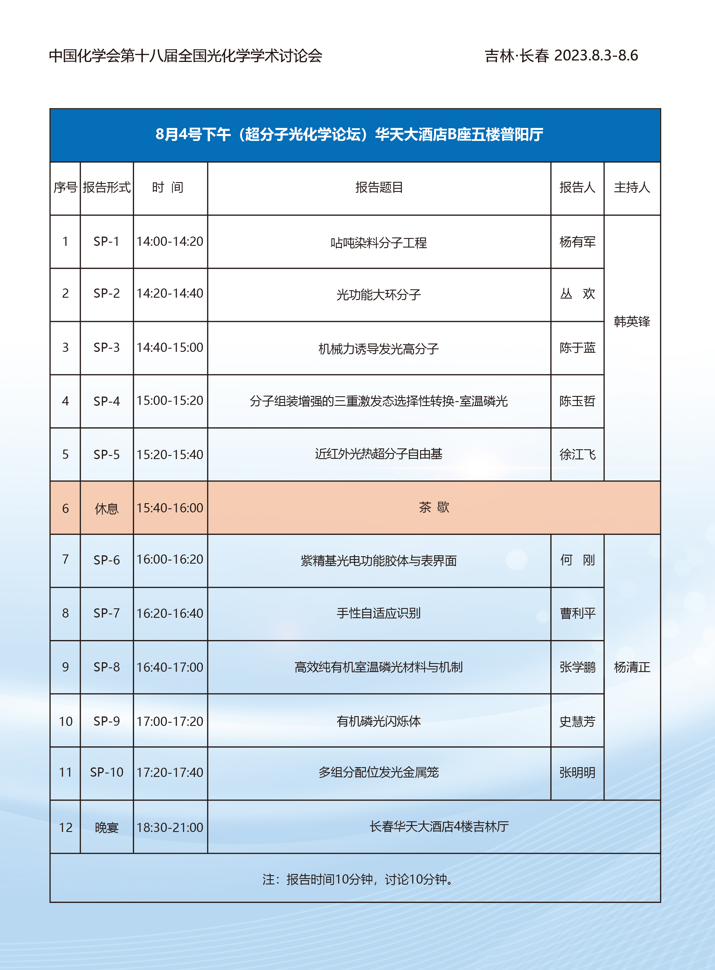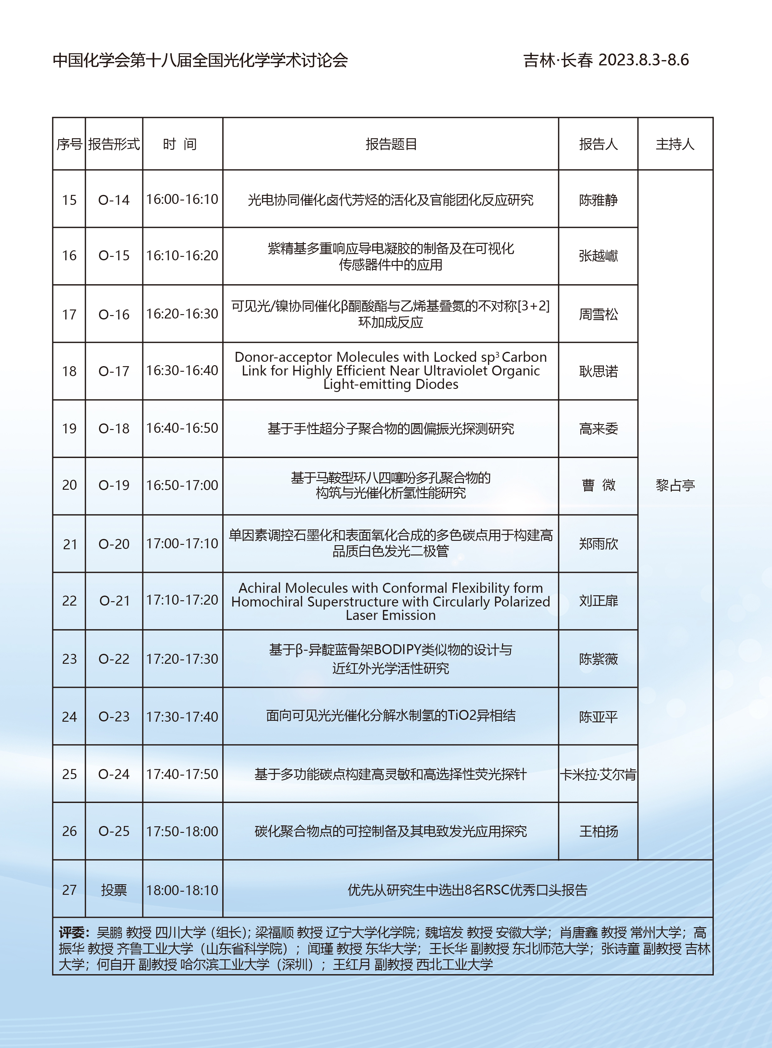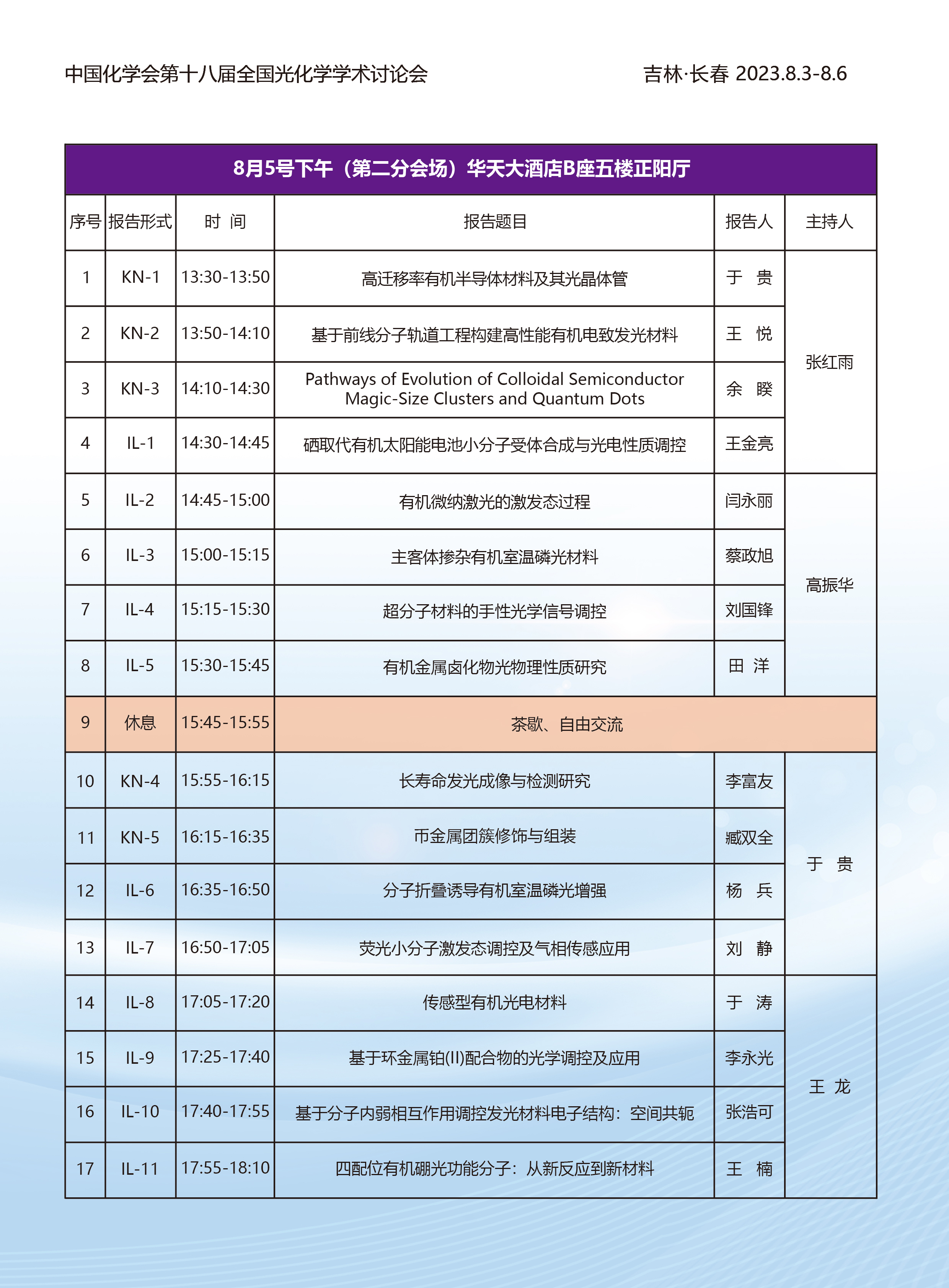 2023中国化学会第十八届全国光化学学术研讨会第三轮通知