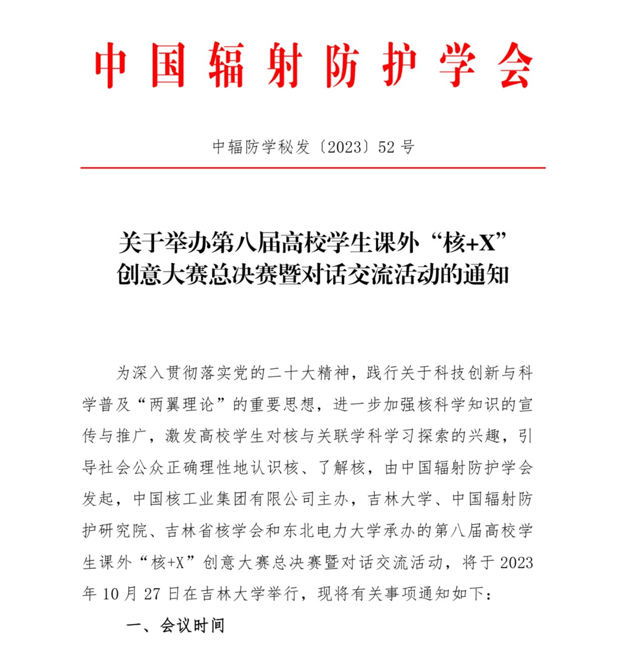关于举办第八届高校学生课外“核+X”创意大赛总决赛暨对话交流活动的通知
