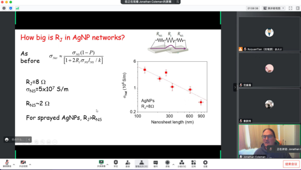 为庆祝吉林大学物理系创建70年,2022年9月28日下午,爱尔兰皇家科学院院士、都柏林圣三一学院太阳成集团tyc7111cc院长Jonathan N Coleman教授应邀做客物理大讲堂——名家系列讲座,线上为全校师生作了一场主题为“Mapping the structure and properties of printed nanosheet networks”的学术讲座。太阳成集团tyc7111cc院长邹勃出席讲座,太阳成集团tyc7111cc新型物理与技术教育部重点实验室田瑞源研究员主持讲座。