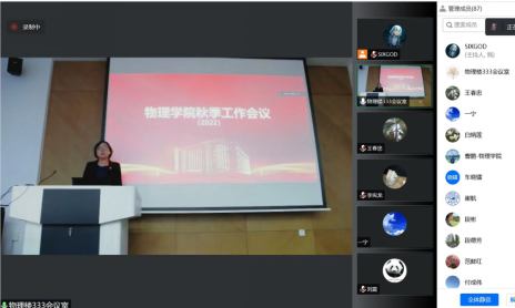 首先,院长邹勃对战斗在抗疫一线的学院教职工和同学们表示衷心感谢,高度赞扬了他们为师生生命健康安全付出的努力和辛苦。然后,邹勃重点从科学研究、人才培养方面,总结了2022年学院取得的成绩,分析了不足,查找了问题。邹勃指出,学院优势突出,但存在的不足也很明显,学院要充分发挥优势,弥补不足,努力打造“风清气正”的人文环境,全力推动高压物理、计算物理高峰学科的建设发展,协力提高能源物理、理论物理、光物理的建设水平,协调加快推动“双一流”建设。邹勃对下半年工作进行了安排部署,着重强调了三点,一是在科研方面,要做有品位的工作。要以满足国家需求为导向,坚持“四个面向”,强化前沿科学部署,凝练科学问题,积极申报国家项目,承担国家任务,同时要加强成果转化,突破核心关键技术。二是在师资队伍建设方面,要全力引育人才。人才不仅要以“请”为“引”,更重要要在育上下功夫,首先对陷入职业困境的老师,要“融”“转”结合, 力争实现“人尽其才,才尽其用”,其次要加大对青年教师的支持力度,要发现苗子,提前规划,早做安排。三是,齐短板,补不足,严标准,实考核。要求老师要把自己短板补齐,严格按照学校要求,给予高标准考核,展现出与一流学科相符合的水平。