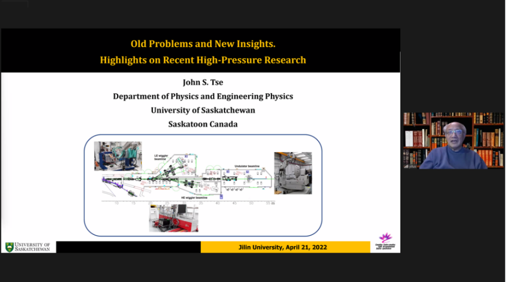 2022年4月21日上午,加拿大皇家科学院院士、加拿大萨斯喀彻温大学谢硕(John S. Tse)教授应邀线上做客吉林大学鼎新讲座,为全校师生作了一场主题为“Old Problems and New Insights: Highlights on Recent High-Pressure Research”的学术报告。吉林大学副校长马琰铭出席并主持了讲座。