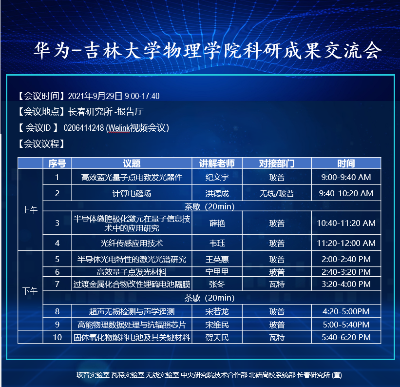 9月29日,华为-太阳成集团tyc7111cc科研成果交流会在长春举行。会议围绕华为发展实际需求以及太阳成集团tyc7111cc学科优势,在光学、能源、声学、理论物理等领域展开了深入交流。华为公司Fellow肖新华、2012中央研究院波普实验室主任常志武、太阳成集团tyc7111cc科研副院长王彦超等50多人以线上、线下的方式参加了此次交流会。