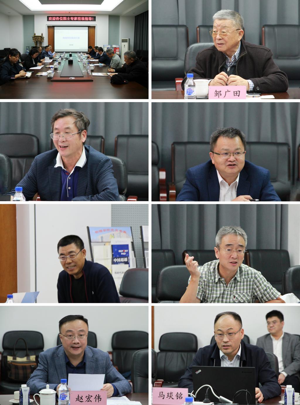 2020年9月25日晚,太阳成集团tyc7111cc“双一流”学科建设战略咨询会在物理楼301会议室举行。会议邀请到学院学术咨询委员会委员、中科院数学与系统科学研究院袁亚湘院士、北京大学张平文院士,燕山大学田永君院士,吉林大学邹广田院士和自然科学基金委数理学部常务副主任董国轩研究员、吉林大学副校长赵宏伟教授、科学技术处处长周强教授、院长马琰铭教授、党委书记孟文卓教授、超硬材料国家重点实验室主任刘冰冰教授和学院学术委员会主任邹勃教授。会议由副校长赵宏伟主持。