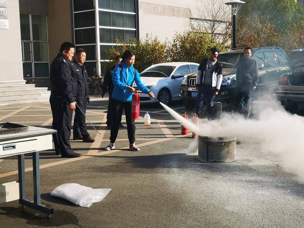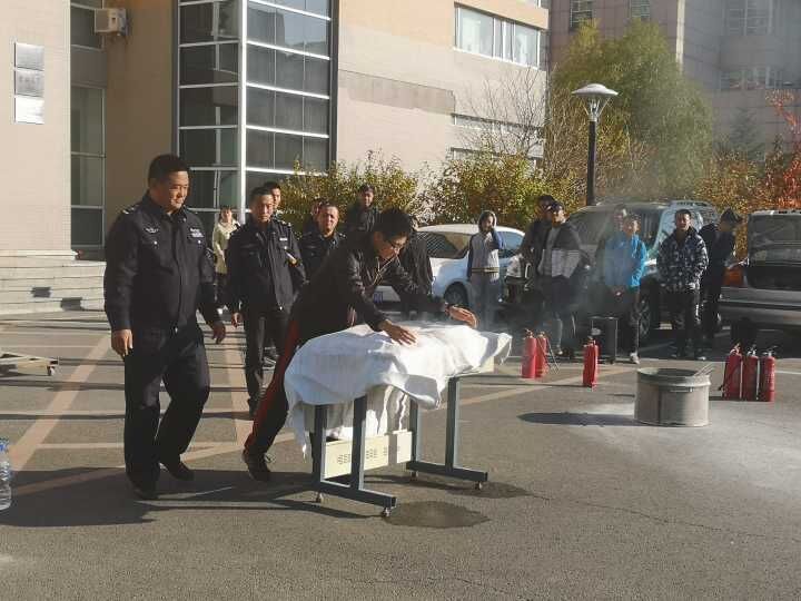 保卫处消防科董立明老师通过讲座,以众多火灾事故案例来触动师生提高安全防火意识,随后又细致生动的讲解如何在事故中有序的疏散、在危险中逃生、自救、互救的技能,切实增加了师生的事故应变能力。讲座结束后,随即展开了安全防火演练,警报拉响后,疏散组人员立即组织师生掩护口鼻穿过浓烟,迅速有序的从楼两侧安全通道撤离至楼前安全地带。疏散结束后保卫处老师为师生示范并详细讲解灭火器及灭火毯的使用方法,同学们也积极踊跃进行实际操作,掌握了正确的灭火方法。