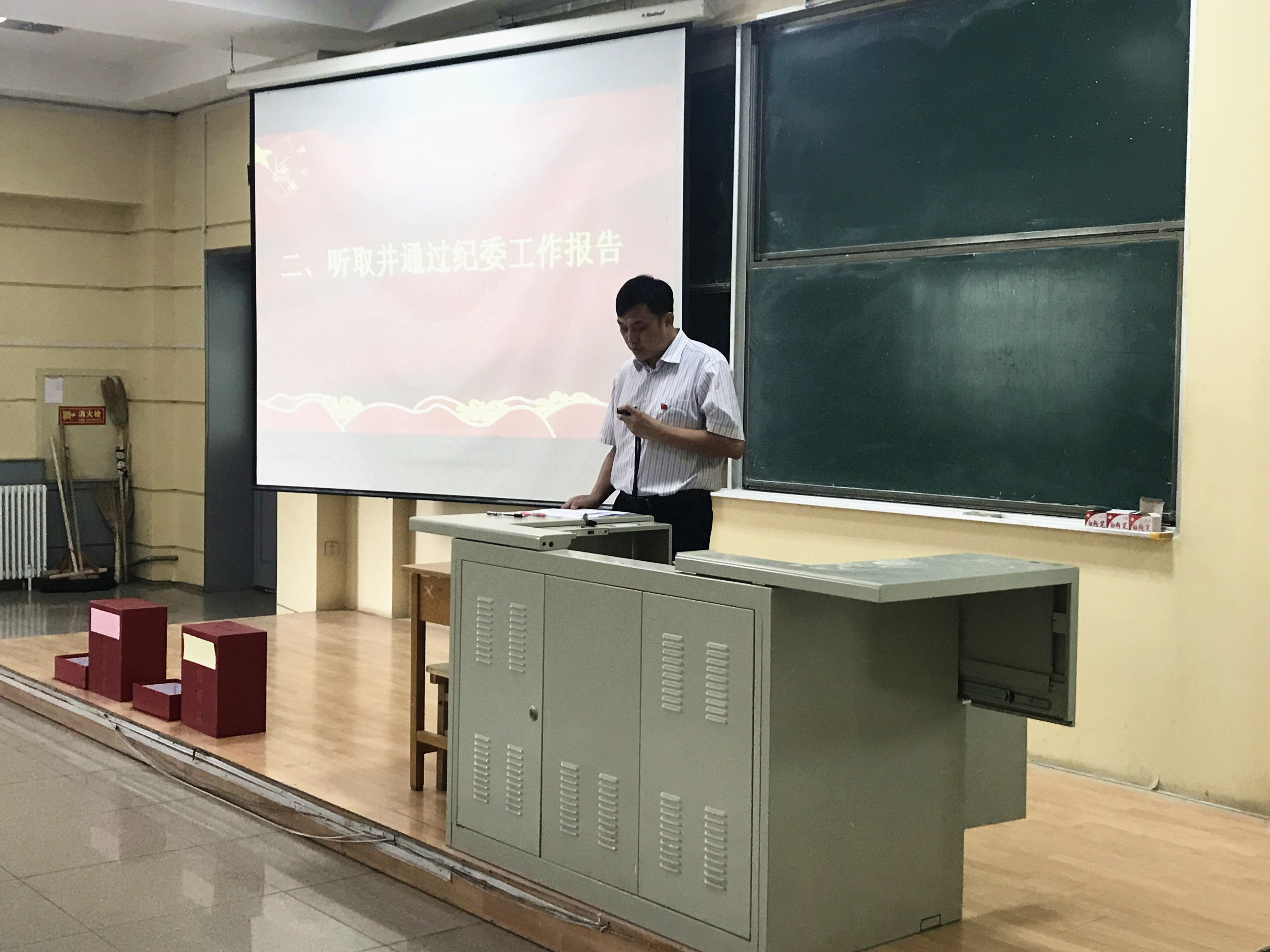 党委副书记唐宗明同志代表上届纪委作了题为《坚持党的领导,加强党内监督,为一流学科建设保驾护航》的工作报告,分为工作回顾、工作体会及今后工作设想三个方面,报告指出,过去四年,学院纪委不断增强廉政教育,筑牢思想道德防线;健全规章制度,堵塞滋生腐败漏洞;实施一岗双责,落实干部廉政责任;完善监督机制,强化源头防腐措施;做好信访工作,促进校园和谐稳定。未来工作中将进一步提高认识,切实加强惩治和预防腐败体系建设;加强领导,全面落实党风廉政建设责任制;旗帜鲜明,整体推进反腐倡廉各项工作;强化管理,提高纪检干部队伍履职能力。