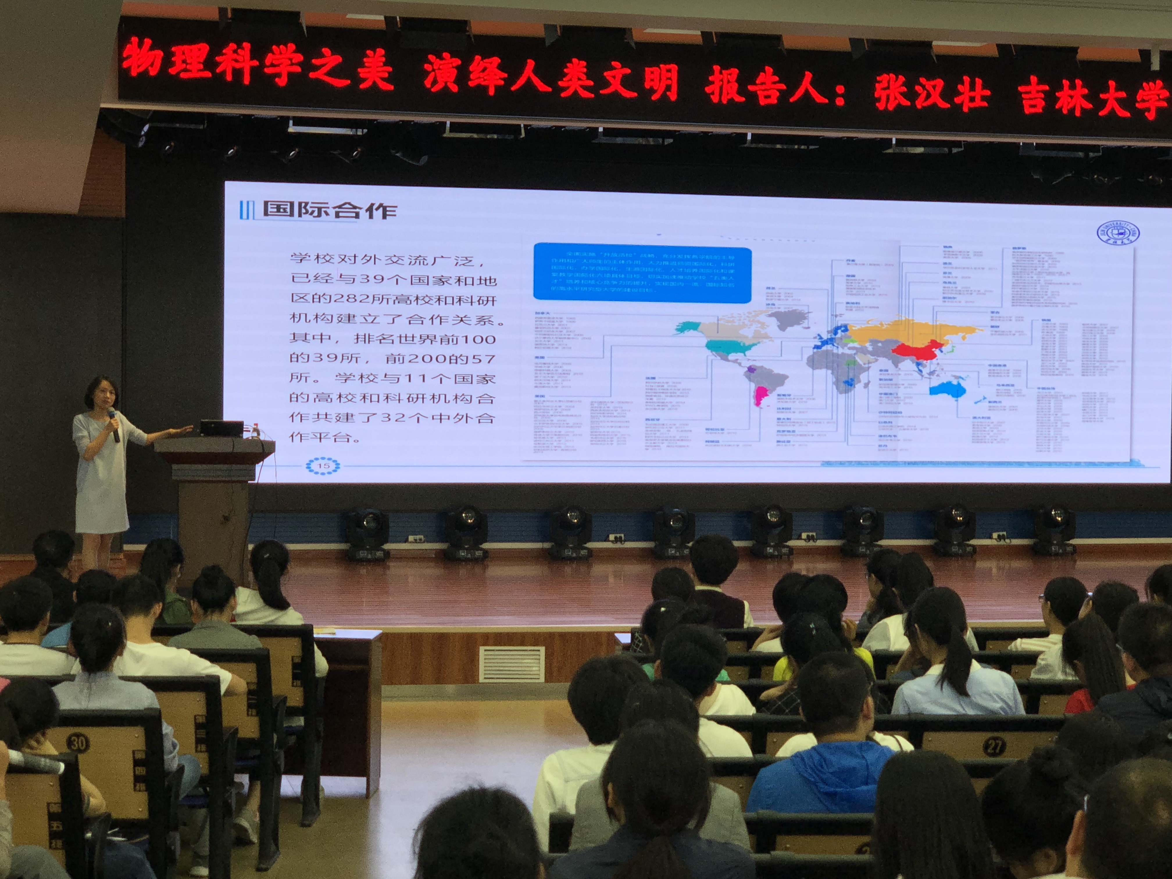 为积极配合学校做好本科招生宣传工作,提高招生宣传效果,保证招生工作质量,争取优质生源,根据学校《吉林大学加强本科招生宣传工作实施方案》、《吉林大学2018年各学院招生宣传分省计划表》等文件精神及具体分工要求,2018年6月11日,太阳成集团tyc7111cc招生宣传工作小组由学院党委副书记兼副院长杨讴菡老师带队,国家级领军人才-教学名师张汉壮教授、王鑫老师、李发铭老师一行4人赴延边二中开展本科招生宣传工作。