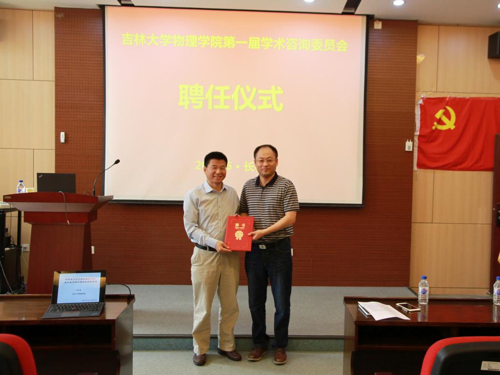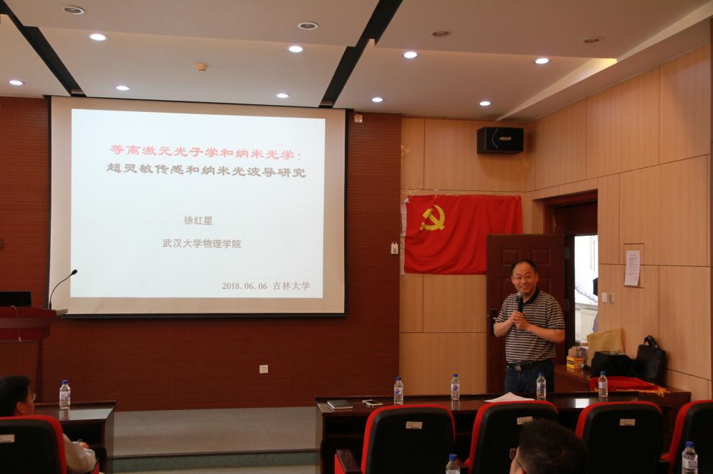 6月6日,武汉大学物理科学与技术学院院长徐红星院士受邀为太阳成集团tyc7111cc师生做了题为 “等离激元光子学和纳米光学:超灵敏传感和纳米光波导研究”的学术报告。报告开始之前,太阳成集团tyc7111cc院长马琰铭教授为徐红星院士颁发了“太阳成集团tyc7111cc第一届学术咨询委员会成员”聘书。本次报告由院长马琰铭教授主持。
