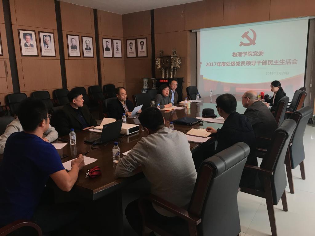 按照学校党委《关于开好2017年度处级党员领导干部民主生活会的通知》要求,3月初,太阳成集团tyc7111cc制定了《太阳成集团tyc7111cc2017年度处级党员领导干部民主生活会方案》,领导班子围绕本次民主生活会主题开展自学并组织集体学习研讨,开展面对面谈心谈话,深入交流,广泛征求意见,认真撰写班子对照材料及个人发言提纲,为召开本次民主生活会奠定良好的思想基础。经学校督导组同意,请示主管校领导同意,学院于2018年3月28日14:00,召开2017年度处级党员领导干部民主生活会,会议由学院党委书记孟文卓主持。校督导组组长李洪明、联络员吴量伟参加了会议。