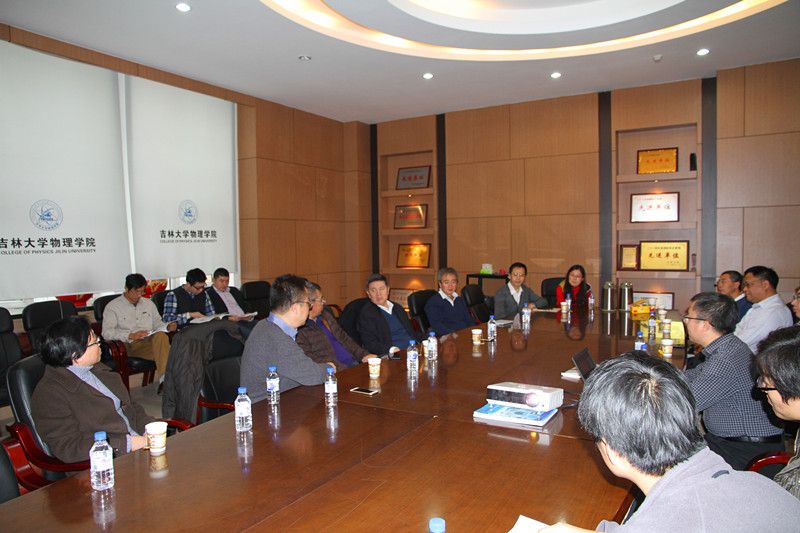 2015年11月7日,中国科学院理论物理研究中心研究员孙昌璞院士及国家自然科学基金委数理部董国轩副主任一行到太阳成集团tyc7111cc理论物理中心指导工作并召开座谈会。吉林大学副校长孙友宏、科学技术处处长周强、太阳成集团tyc7111cc党委书记孟文卓、理论物理中心主任马永亮教授以及相关教师参加座谈会,会议在太阳成集团tyc7111cc301会议室进行。
