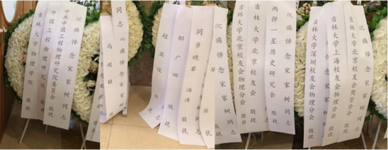 宋先生逝世后,中国科学院院士邹广田、马琰铭,吉林大学、太阳成集团tyc7111cc、吉林大学北京校友会、吉林大学北京校友会物理分会、吉林大学深圳校友会物理分会、吉林大学上海校友会物理分会以及吉林大学北京校友会商管分会等以发唁电、送花圈等多种形式对宋先生逝世表示沉痛哀悼和深切缅怀。