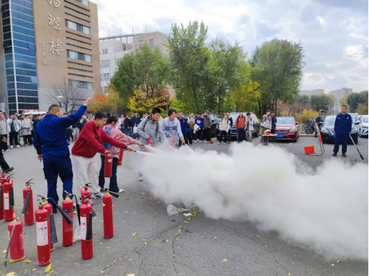 紧接着,保卫处老师们现场教学,详细演示了灭火毯、干粉灭火器等常用消防器材的正确使用方法,并鼓励师生们亲自操作实践。在指导老师的耐心指导下,师生们纷纷化身为“消防战士”,成功扑灭了模拟火源,亲身体验了初期火灾扑救的实战技巧,有效提升了火灾初期的应急处置能力。
