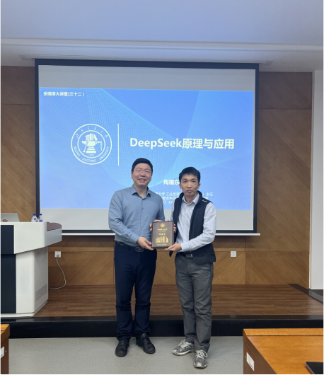 在学术交流环节,与会师生就大模型的可解释性、训练数据偏差校正、领域适应性优化等关键技术问题与陶耀东研究员展开深入讨论。陶耀东研究员指出,DeepSeek 作为第三代预训练模型的代表性成果,其模块化架构和可扩展特性为面向垂直领域的模型定制提供了新的技术路径。然而,在物理先验知识融合、小样本学习等方向仍需持续探索。大模型的可解释性是当前研究的一个热点和难点问题,需要从模型结构、训练过程和输出结果等多个层面进行深入研究,以提高模型的透明度和可信度;训练数据偏差校正是确保模型公平性和泛化性的关键,需要采用有效的数据预处理和后处理方法,减少数据中的偏差对模型性能的影响;领域适应性优化则需要进一步研究领域特征和任务需求,开发更有效的领域适应算法和模型架构。