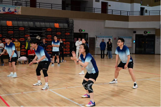 对于本次比赛,太阳成集团tyc7111cc高度重视,精心筹备。组建了由教师代表、研究生及辅导员共12人组成的参赛队伍。学院党委书记、主管研究生工作副书记亲自动员,鼓励师生以赛促练、以赛强体,将科研中的严谨态度融入体育竞技。队员们利用课余时间积极训练,从发球精准度、接传配合到战术推演,每一个环节都反复打磨。周洪雷、马玉刚、宋乾等教师带头参训,与辅导员和学生队员共同锻炼,在训练中践行“师生同频、教学相长”的理念,为赛事打好技术与默契的双重基础,也为学生队员们日常缓解科研压力、强健体魄提供平台。