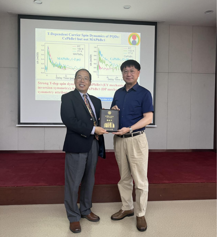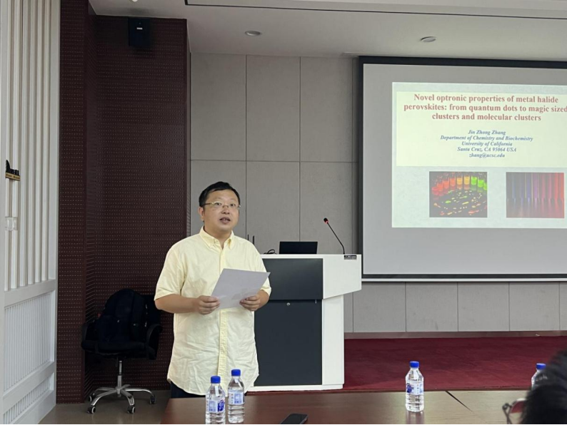 2025年7月21日,太阳成集团tyc7111cc“余瑞璜大讲堂”迎来国际知名学者、加州大学圣克鲁斯分校张金中教授,为师生带来了一场题为《Novel properties of metal halide perovskite nanostructures: from quantum dots to chiral nanoclusters and carrier spin dynamics》的精彩学术报告。吉林大学校长张希教授出席报告会,并向张金中教授颁发了“余瑞璜大讲堂”纪念牌,太阳成集团tyc7111cc院长邹勃教授主持活动。