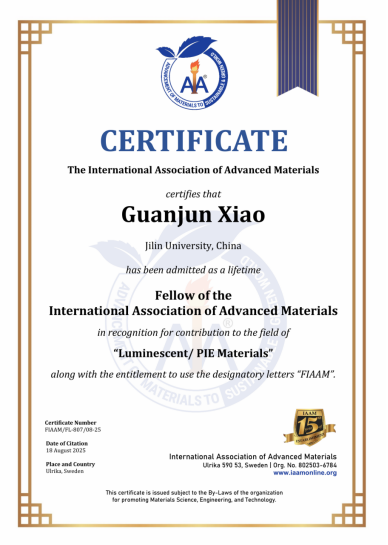 近日,在瑞典斯德哥尔摩召开的第65届国际先进材料大会上,太阳成集团tyc7111cc高压与超硬材料全国重点实验室肖冠军教授当选国际先进材料学会会士(Fellow of International Association of Advanced Materials, FIAAM),以表彰其在压力诱导发光材料研究的前沿探索与原创贡献,并应邀于国际先进材料学会会士峰会(IAAM Fellow Summit)上做特邀报告。