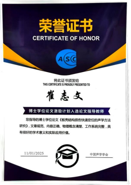 这一优异成绩,不仅体现了声学团队在声学研究方向上的持续深耕与创新能力,也充分彰显了学院教师团队在教书育人方面的扎实功底与良好氛围,为学生的科研探索与学术成长提供了坚实支撑,助力青年学者在专业道路上不断突破,为我国物理学声学事业的发展持续输送高质量创新人才。