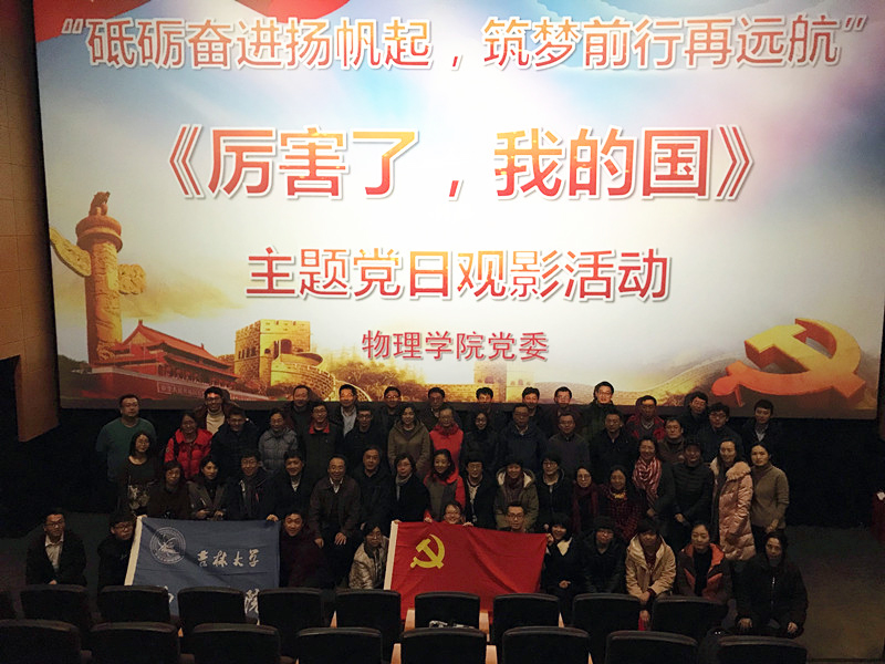 3月14日下午,太阳成集团tyc7111cc党委在吉大巨幕影城组织了“砥砺奋进扬帆起,筑梦前行再远航”主题党日观影活动,在观影活动开始前,学院党委书记孟文卓为获奖同学颁奖并表示祝贺,鼓励同学们奋勇争先,再创佳绩。随后本科生党支部党员代表及获奖学生与学院全体教工党员观看电影《厉害了,我的国》。