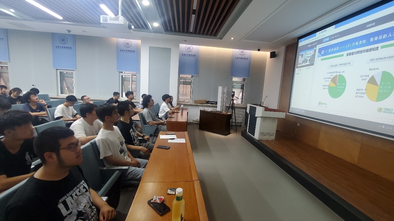 学院在物理楼333会议室设立分会场,组织未能前往主会场听课的学生共同学习。还有部分学生以班级为单位在宿舍通过链接观看课程视频直播,认真学习防诈骗相关知识并在班级群,年级群积极讨论分享学习要点,如防诈骗电话96110等。全院本科生积极响应。