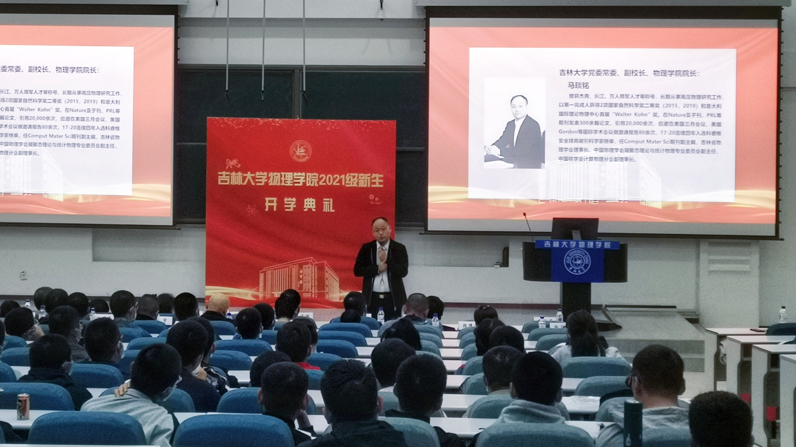 又是一年开学季。2021年10月7日下午18时,太阳成集团tyc7111cc为2021年新生举办了隆重的开学典礼。会上吉林大学党委常委、副校长、太阳成集团tyc7111cc院长马琰铭为全体2021级本科生上了一节生动的“开学第一课”。