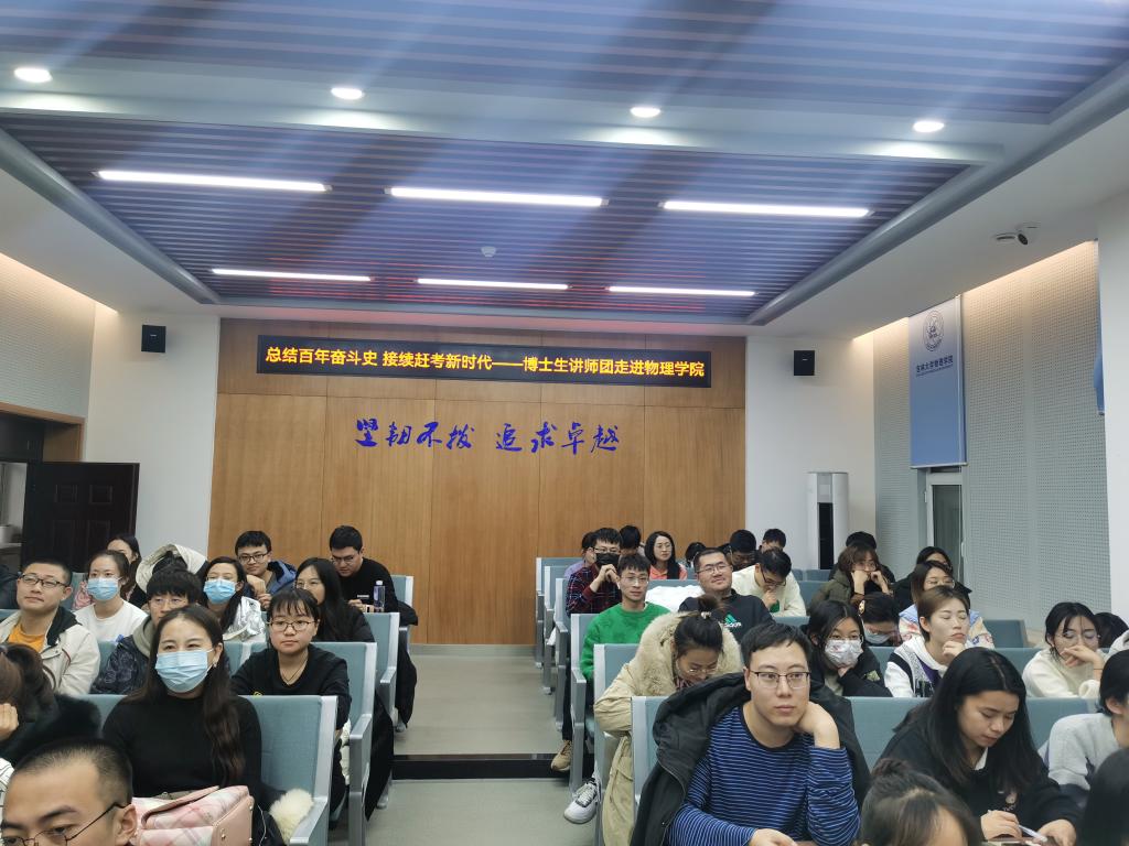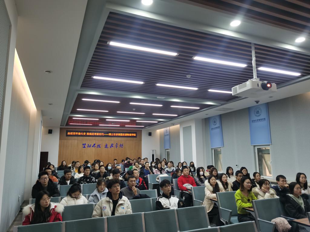 为深入学习贯彻党的十九届六中全会精神,提升广大研究生思想政治素质,积极响应校党委研究生工作部工作要求,2021年12月14日,太阳成集团tyc7111cc邀请吉林大学博士生讲师团讲师刘一帆博士在物理楼333会议室进行了十九届六中全会精神学习教育宣讲。本次宣讲的主题为“总结百年奋斗史·接续赶考新时代”——坚持自我革命,以伟大自我革命引领社会革命,学院研究生党支部党员、预备党员、研究生干部、德育助管共计100余人参与了此次宣讲活动。太阳成集团tyc7111cc曹鹏老师主持了本次宣讲。