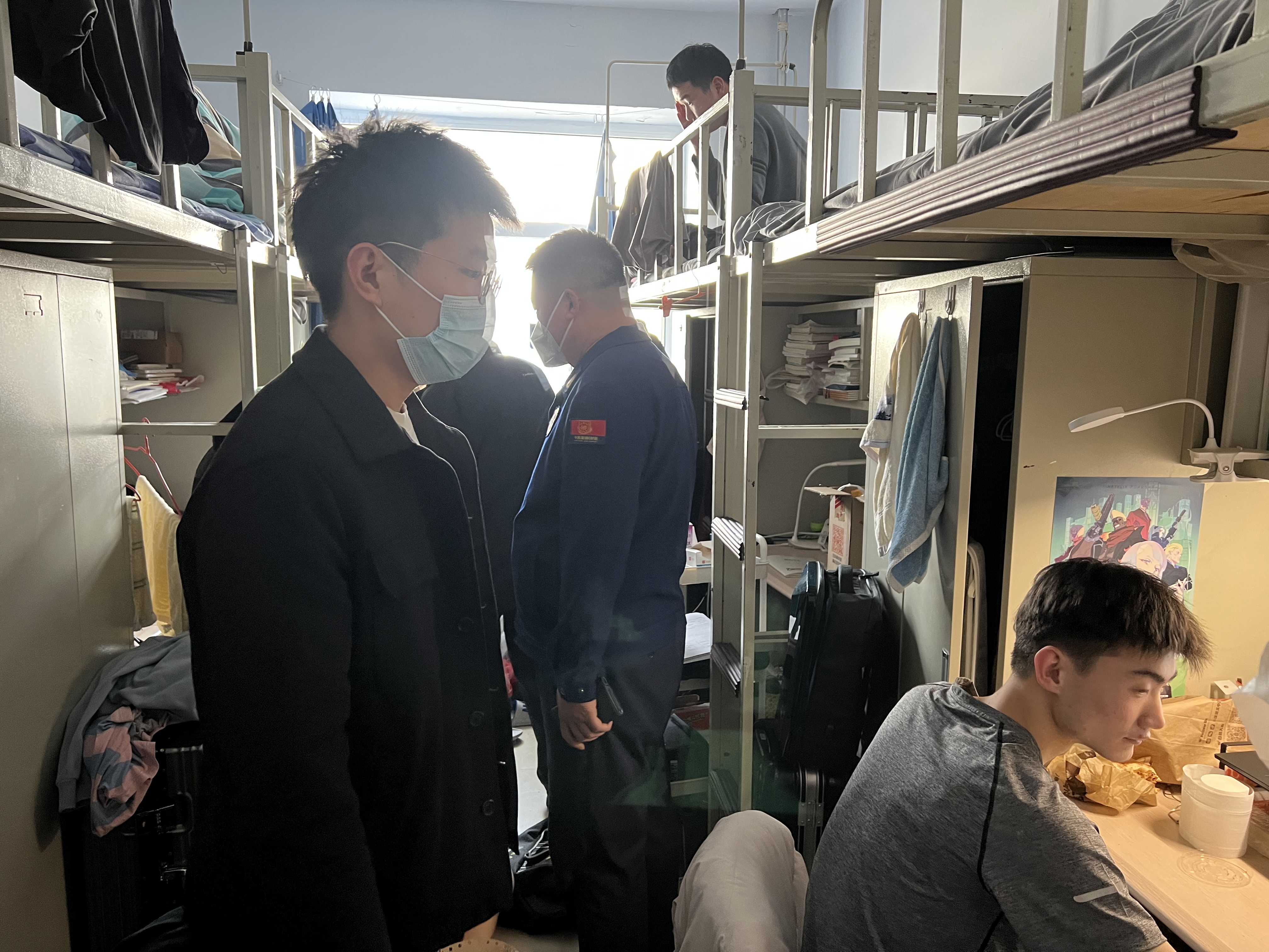 新学期来临,为全面做好各项教育工作,进一步落实《关于开展吉林大学本(预)科学生公寓卫生安全检查专项行动的通知》相关要求,结合返校后学生感染新冠及甲流感染情况,2023年3月,太阳成集团tyc7111cc辅导员刘扬、车禹剑、王子璁前往南苑一公寓、南苑二公寓、南苑五公寓C区、南苑四公寓、文苑二公寓开展寝室安全消防检查,摸排学生公寓火灾隐患、不稳定因素和其他违规情况,消除学生公寓安全隐患,引导学生养成良好的卫生习惯。